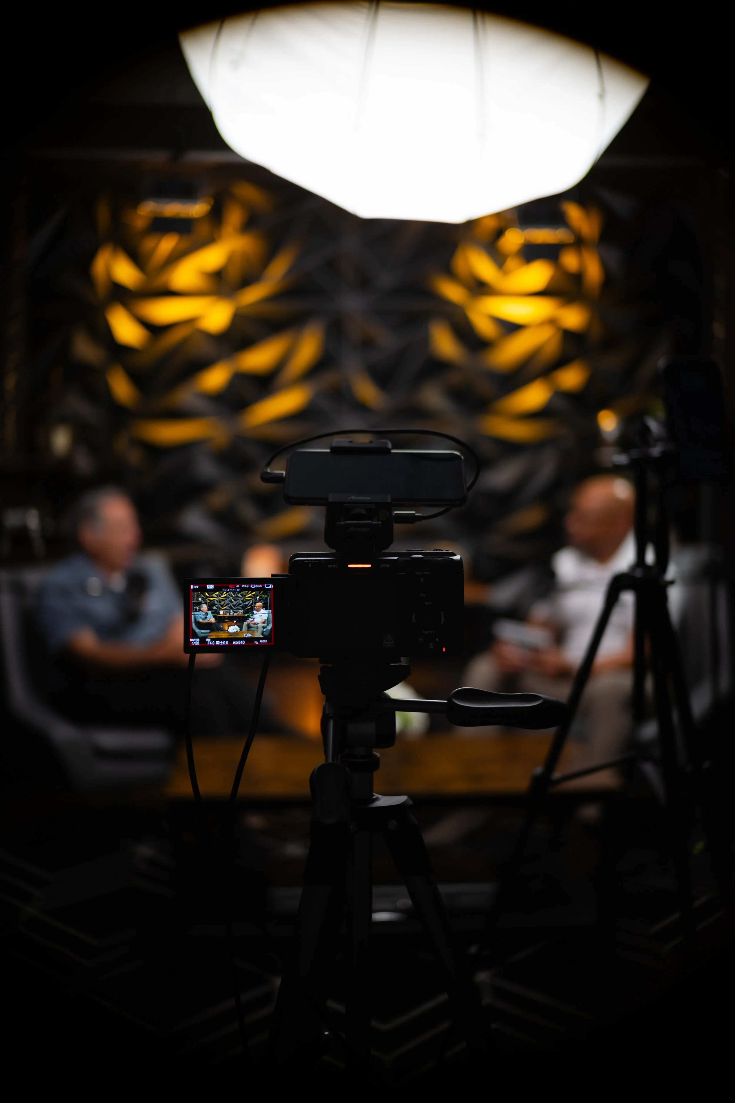 Versatile, modern space designed to comfortably accommodate 2–3 people. Outfitted with up to four professional microphones, a three-camera setup, and studio-grade lighting, it’s perfect for high-quality recordings. The sleek, gray-toned design gives the room a clean, contemporary feel that looks great on camera.